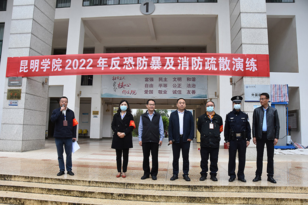 10月7日,学校组织开展2022年反恐防暴及灭火疏散演练。本次演练由副校长郭华担任领导小组组长,学校保卫处、外国语学院、数学学院相关负责人担任副组长。昌宏路派出所警官、云南飞虎保安有限公司负责人,外国语学院、数学学院师生代表参加演练。