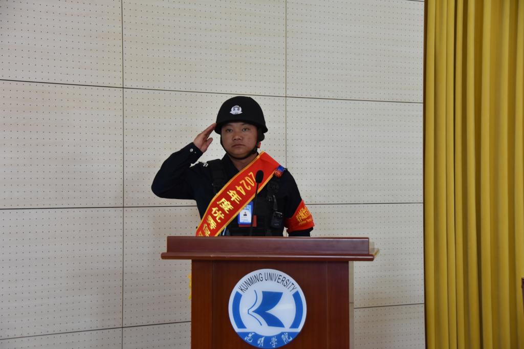 为表彰先进,树立典型,进一步激发全体保卫人员参与校园安全稳定工作的积极性和创造性。2025年1月7日,学校召开2024年度校园安保表彰大会。学校党委委员、副校长彭志远、职能部门党委书记罗闵钰、学生处副处长刘艳萍、资产与实验室管理处副处长林路、实训基地管理中心主任银立新及云南中和保安服务(集团)有限公司董事长赵和参加了本次表彰大会。保卫处处长喻玲主持表彰会。