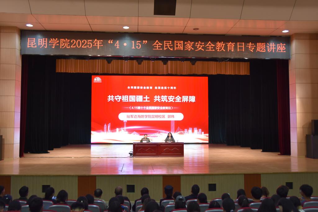 为深入贯彻落实习近平总书记关于全面加强国家安全教育的重要指示精神,切实做好第十个国家安全日的宣传活动,4月15日,学生工作部(武装部)、保卫处联合开展“全民国家安全教育•走深走实十周年”专题讲座。讲座邀请中国人民解放军陆军边海防学院昆明校区教员郭玮,以“共守祖国疆土 共筑安全屏障”为主题,在学生会堂为全校18个学院900余名师生代表带来了一场深刻而生动的国家安全教育专题讲座。讲座由保卫处处长喻玲主持。