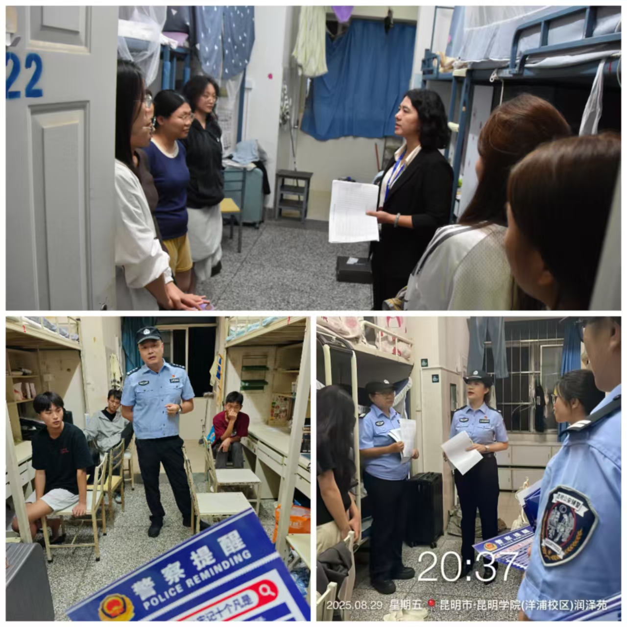 为切实提升2025级新生安全防范意识,有效遏制电信网络诈骗等案件发生,学校联合昆明市公安局经开分局等多单位于8月28日至31日启动2025级新生入学安全护航行动,通过“现场宣传+宿舍走访+学院授课”三维模式,为新生上好开学“安全第一课”。